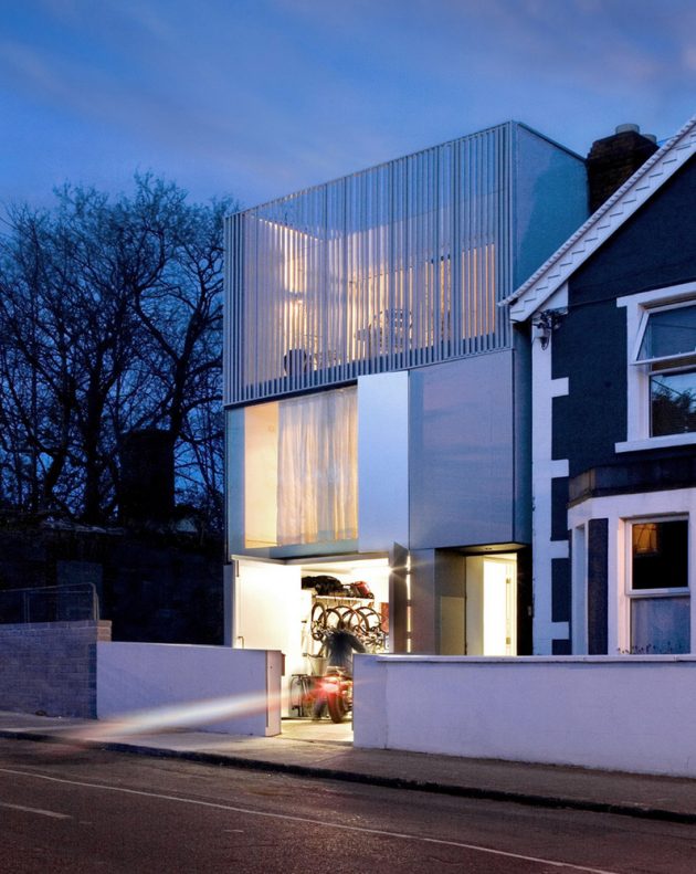 ODOS architects have designed the Grangegorman Residence in Dublin, Ireland for a client who is a motorcycle enthusiast. This is one of the reasons why the exterior has a metallic look.
