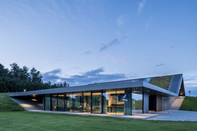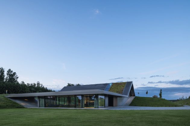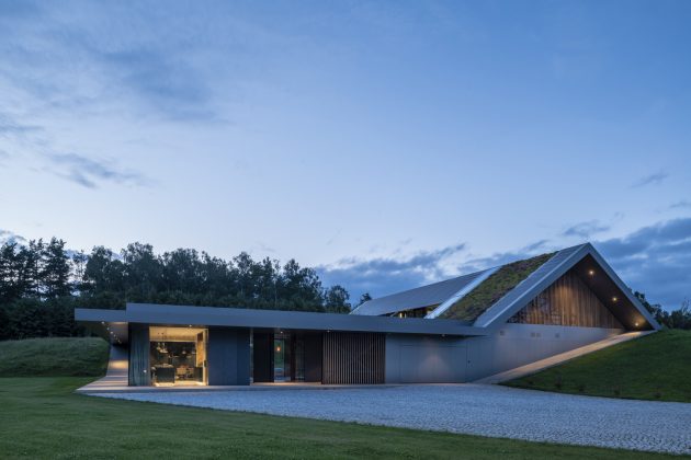 Mobius Architects is a studio from Poland who have really attracted our attention with their Green Line House project. This solitary home blends in perfectly with the surrounding environment, creating just under 5,000 square feet of living spaces in an unobtrusive manner. The building has a green roof while most of the spaces are kinda buried from one side, strengthening the privacy of the interiors while also helping to blend it in with the nature.