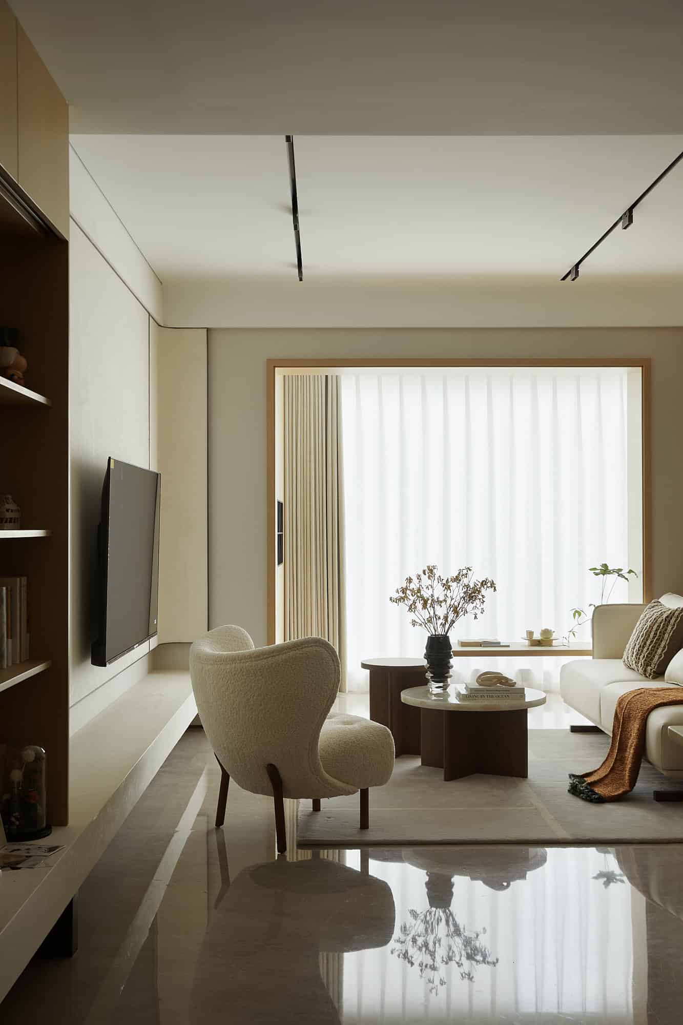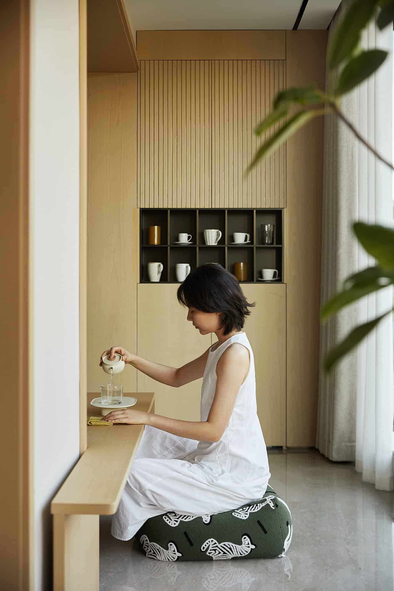 Kunming, often referred to as the “Spring City,” is surrounded by mountains and faces the tranquil Dianchi Lake. This idyllic setting inspired WJ Studio to craft a design that harmonizes with its environment, emphasizing natural light, open spaces, and a sense of calm. The project’s guiding philosophy is to rediscover the core of everyday life, creating a home that fosters both individual reflection and communal connection. The result is a versatile space that adapts to various lifestyles while maintaining a deep connection to nature.