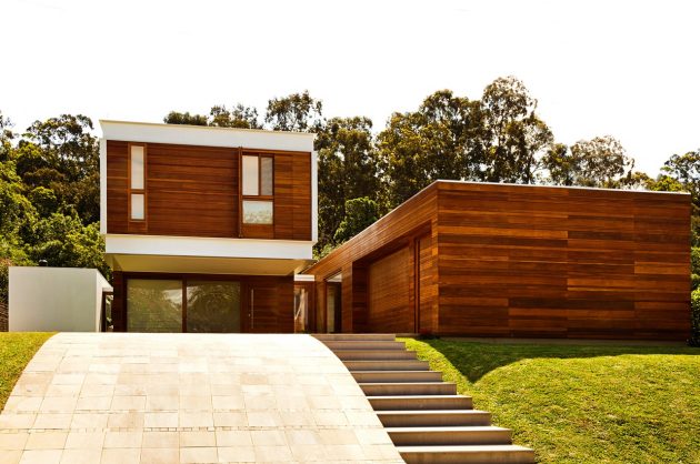 One of the more interesting things that had a huge impact on the overall exterior and interior design of this house is the fact that it is located in a gated community where walls and fences are not allowed. This forced the architects to come up with a design that would ensure maximum level of privacy while following the community’s rules.