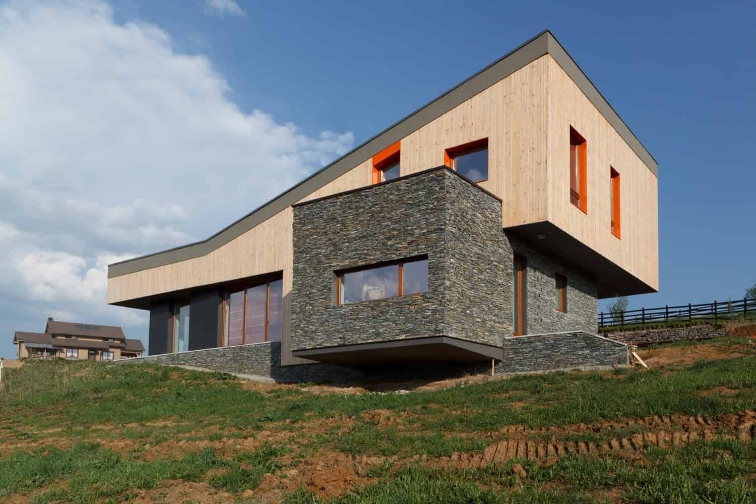 Hajdo House, located in Odorheiu Secuiesc, Romania, is a stunning example of contemporary architecture that thoughtfully integrates into its natural surroundings. Designed by BLIPSZ and Atelier F.K.M, the project is situated on a sloping site that offers breathtaking views of the town and the surrounding mountains. The architects brilliantly navigated the challenge of orientation by organizing the living space around a South-West facing terrace that partially shades the interior from the East and West.