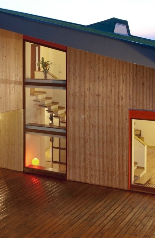 The young, routine-free team works conceptually, the design and execution are sustained by their highly experienced colleagues and construction is pushed by a very persevering, well informed client. The designers do not count the number of hours put in, the beneficiary does not count the money and nerves invested in the project (even if time and money are a problem here, too).All the worries are carried away by the wind blowing up the slope of the house. The family grew larger during the construction.