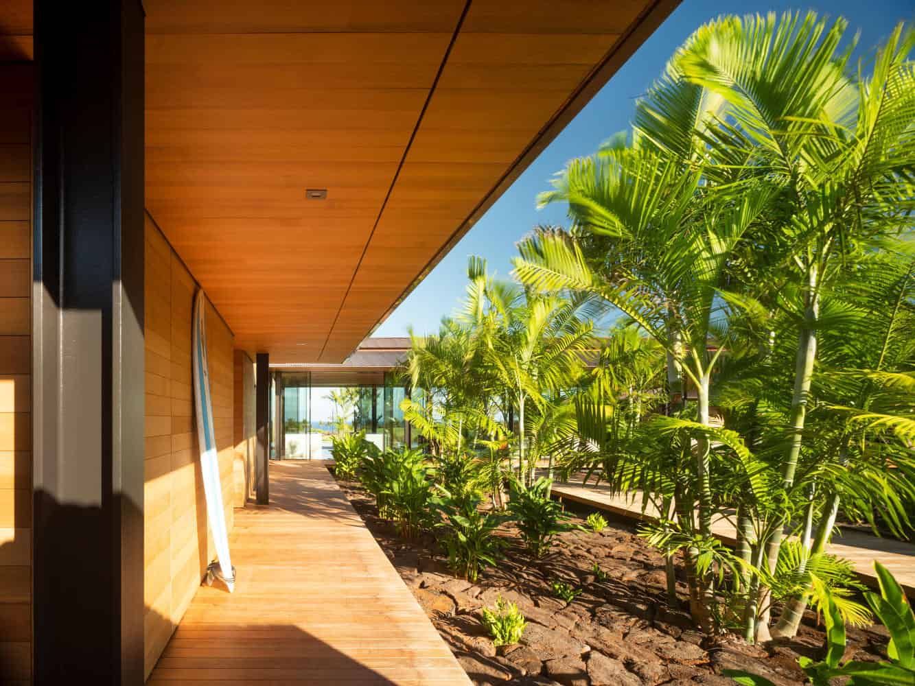 Rather than constructing a single monolithic volume, Olson Kundig composed Hale Lana as a series of canopy-like pavilions, each connected by elevated wooden walkways (lanais) and framed by curated gardens. This spatial strategy not only enhances airflow and privacy but also embraces the traditional Hawaiian architectural vernacular in a modern expression.