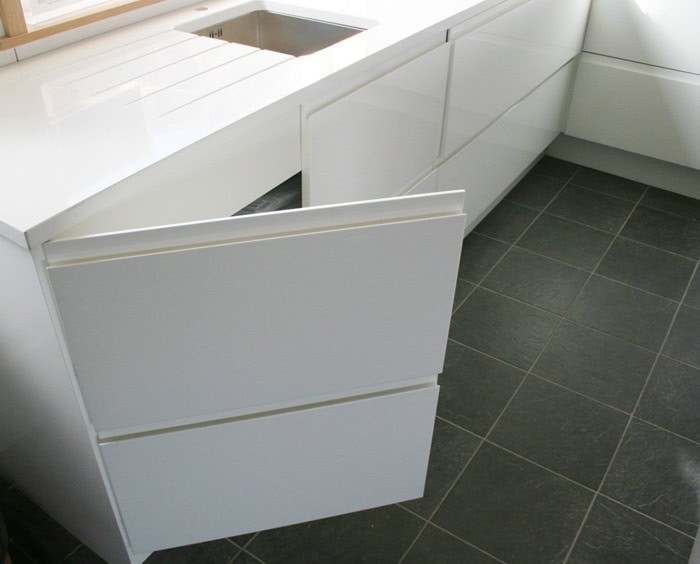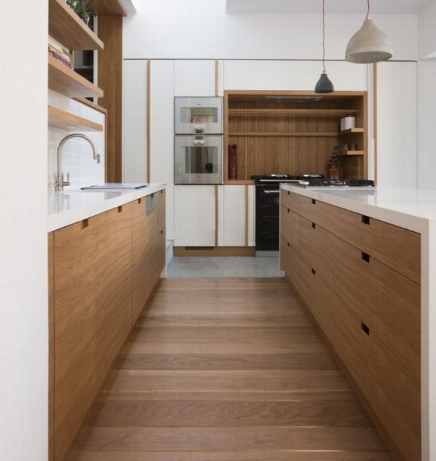 In addition to the various systems for opening the cabinets with pressure, there is another excellent option – cutted out forms on the surface of the front of the kitchen element or on its own edge. A simple round hole or rectangle cut out of the surface, can function as a practical handle for opening or pulling, and it also looks great! We present you one creative collection of Handleless Kitchen Cabinets To Enhance The Look Of Your Dream Kitchen, look at the elegant examples below, and find the best solution that to improve the look of your kitchen. Enjoy in our collection!