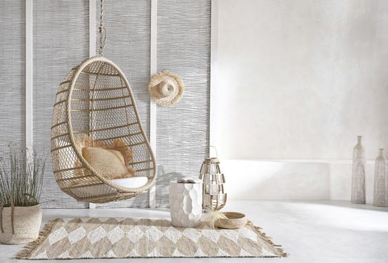 Inside and out, fall for the bohemian charm of the hanging chairAs decorative as it is comfortable, this cocoon blends into our decoration and invites us to calm down.