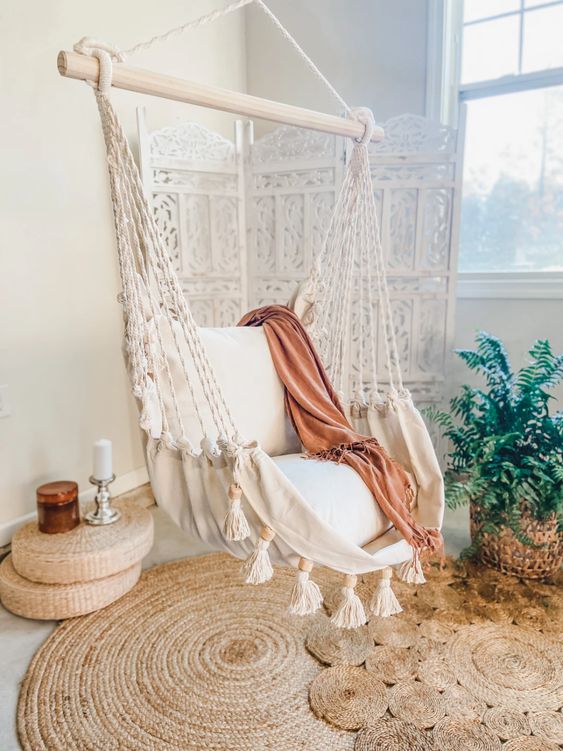 A fan of vintage atmospheres, this hanging chair will delight you.