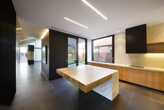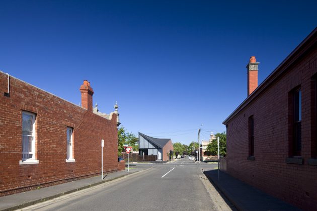 From the architects: “A new dwelling for a couple with university age children called for a design response that could accommodate their evolving family needs. The resulting residence engages with the site’s predominantly single storey Victorian terrace context, through its form and detailing, while exploring the public/private nature of the corner site.”