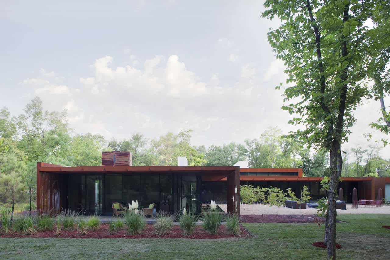 The Heavy Metal Residence is a wonderful modern project designed and developed by Hufft Projects in Joplin, Missouri. In similar fashion to their Baulinder Haus project in Mission Hills and the Artery Residence in Kansas City, this residence is situated in the middle of a densely vegetated plot and makes use of interesting materials to create a minimalist modern living space.