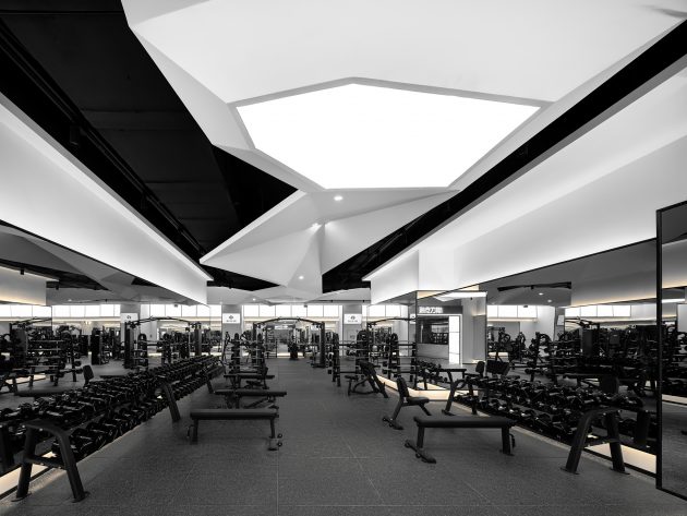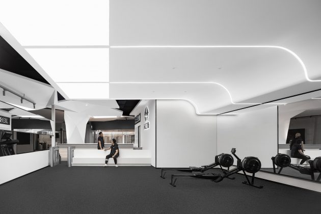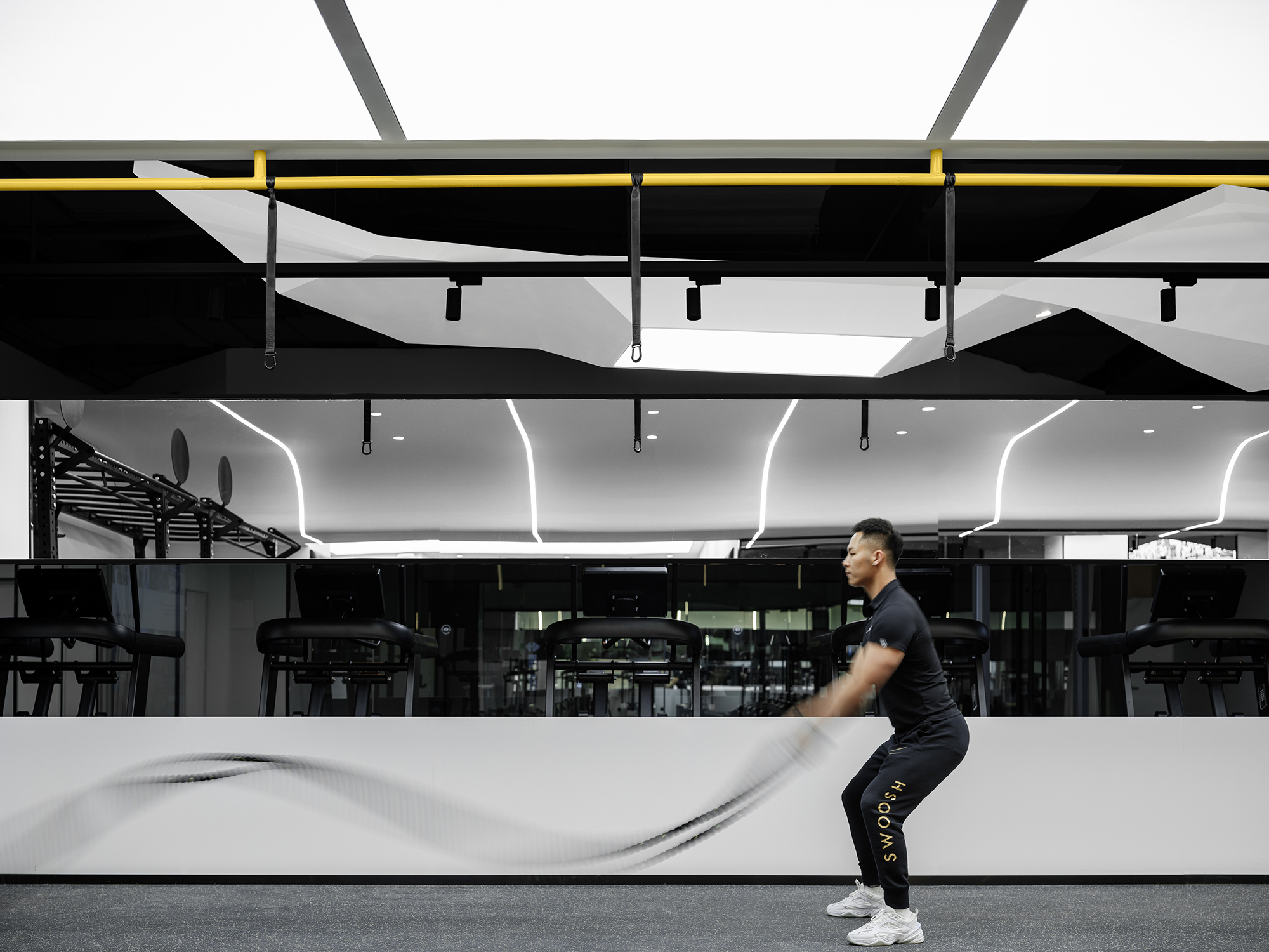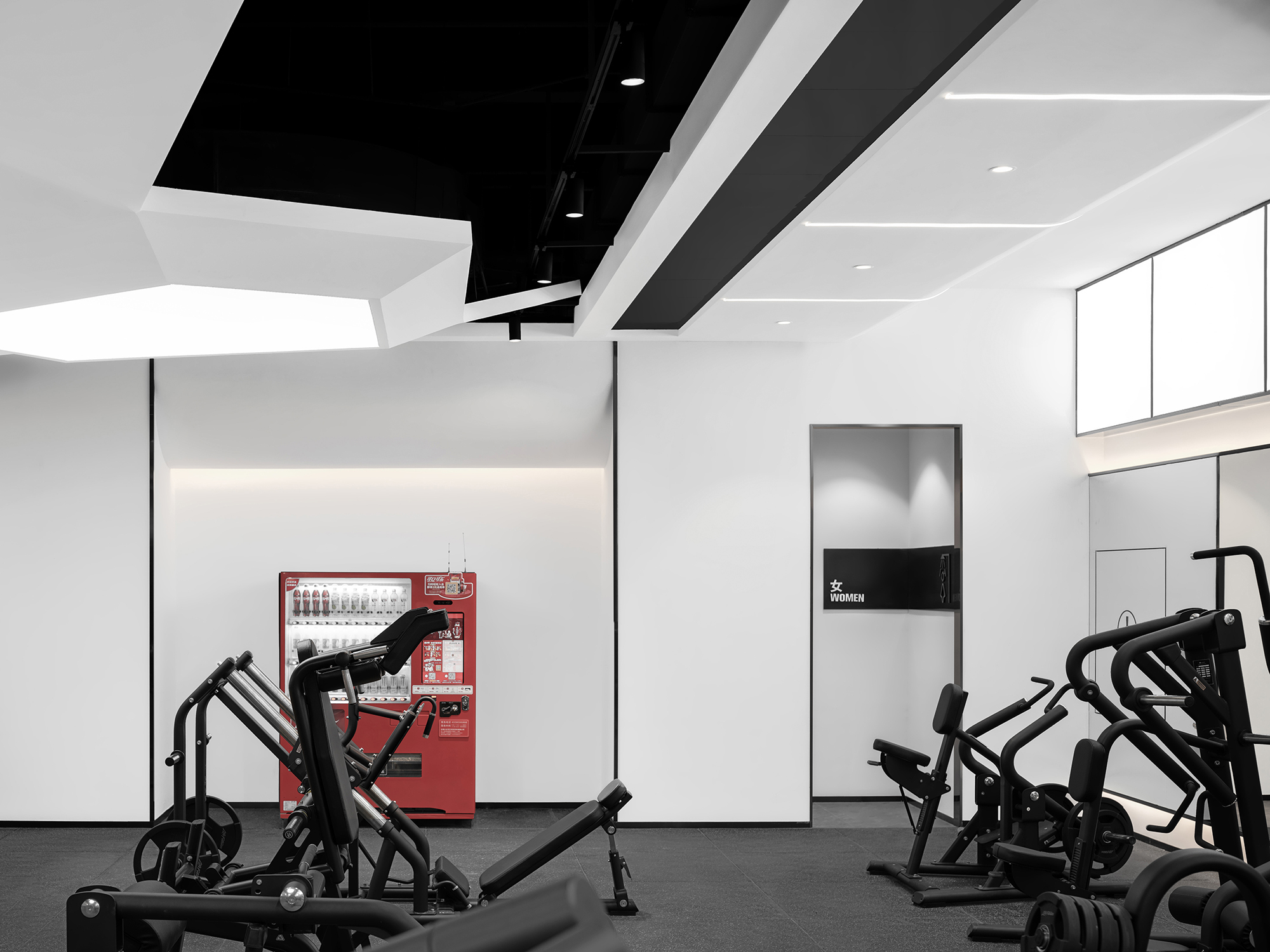 Designer Fang Fei believes that the space for exercise is different from other commercial spaces. It does not need too much eye-catching decoration but should return the space to the people who exercise, which should be controlled, rational, and reserved, just like sports. Therefore, the 4,500-square-meter sports space features minimalist lines, a restrained black and white palette, and clear functional divisions. All the design is based on the concept of “leaving blank”.