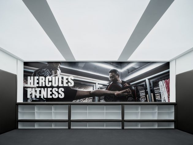 When exercise become a way of life, people will also gain a more active social field. At this moment, sports are not just sports. Considering the social needs of the younger generation, designer Fang Fei has set several “social spaces” in Hercules Fitness. In the multi-functional training room, black and white are continuously used as the main tone of the space, and the benches are specially added at the entrance side to provide a space for rest, waiting for friends, taking a break, or talking.
