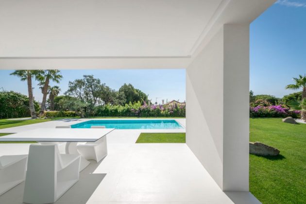 08023 Architects have completed the Herrero House, a 5,651 sq ft (500 m²) residence in Alella, Barcelona, Spain. The three-story dwelling blends clean modern geometry with advanced home automation technologies, expansive terraces, and a lush Mediterranean garden.