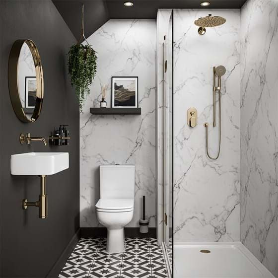 One way to achieve this is by using white bathroom fixtures and contrasting them with black coverings. Inserts are a popular choice because they come in various sizes that fit any bathroom model and space perfectly.