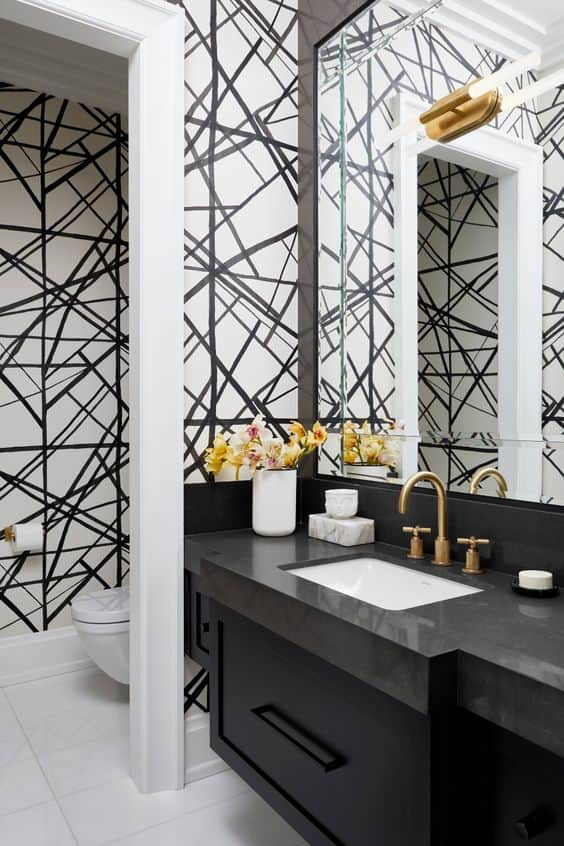 The bathroom decor can be extended to other ideas, such as using striped wallpaper or innovative coverings. If you prefer the former, you can create a vintage look by adding a Venetian mirror to your washbasin.