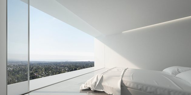 Fran Silvestre Arquitectos, an architecture firm coming from Spain, have designed a stark white residence with an angular form in the hills of Hollywood in Los Angeles, California.