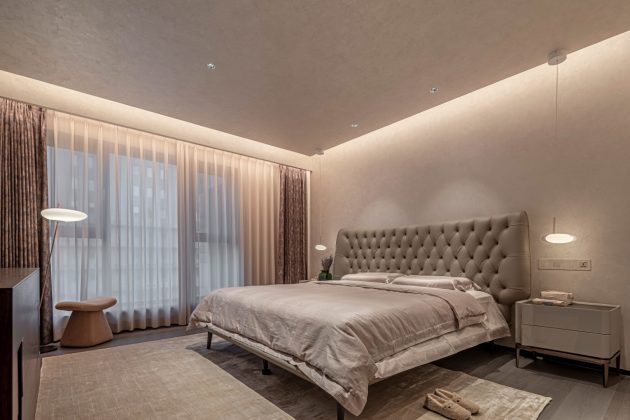 The bedroom showcases the simplicity of oriental culture. Such design provides a sense of freedom and ease, set apart from the world, delivering a comfortable lifestyle.