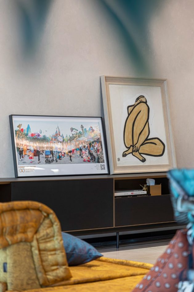 Wang Rui, the project designer, creates a unique dialogue between ancient and modern elements like vintage sofas and Sanyu’s paintings. Her design language integrates diversity into the space, adding a touch of life and freshness to the whole residence.