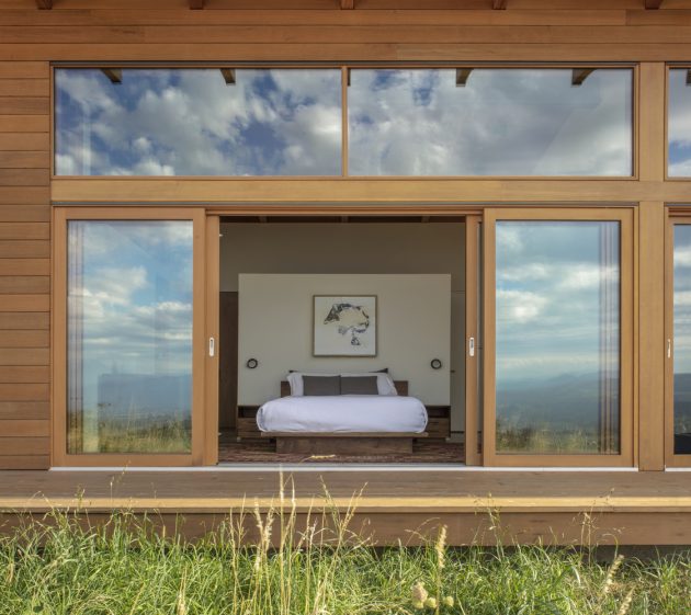 Materially, the use of board-formed concrete, glass expanses and warm wood accents conveys both strength and refinement. The concrete wall not only anchors the house but acts as a shield from the elements, particularly the cold northern winds and southern storms characteristic of the site. In contrast, the north façade becomes mostly glass, tapping into the sweeping valley and mountain views.