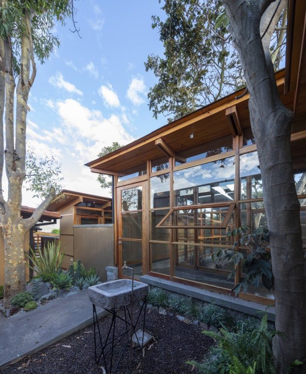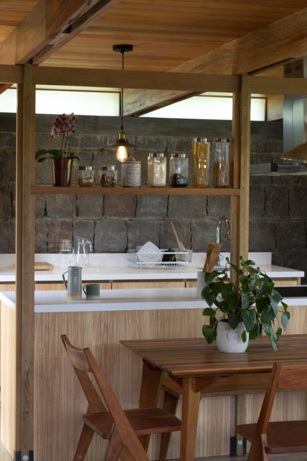The sound of footsteps on wood, the smell of fresh timber, the filtered daylight through leaves — these sensory details define the architecture as much as its geometry. It’s a home that engages the body and the mind, turning everyday living into an act of contemplation.