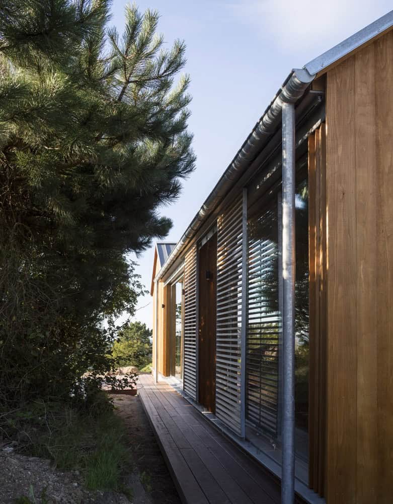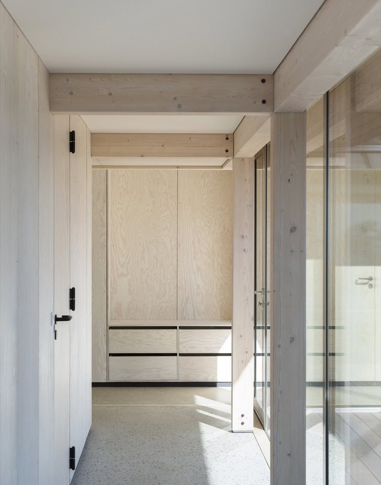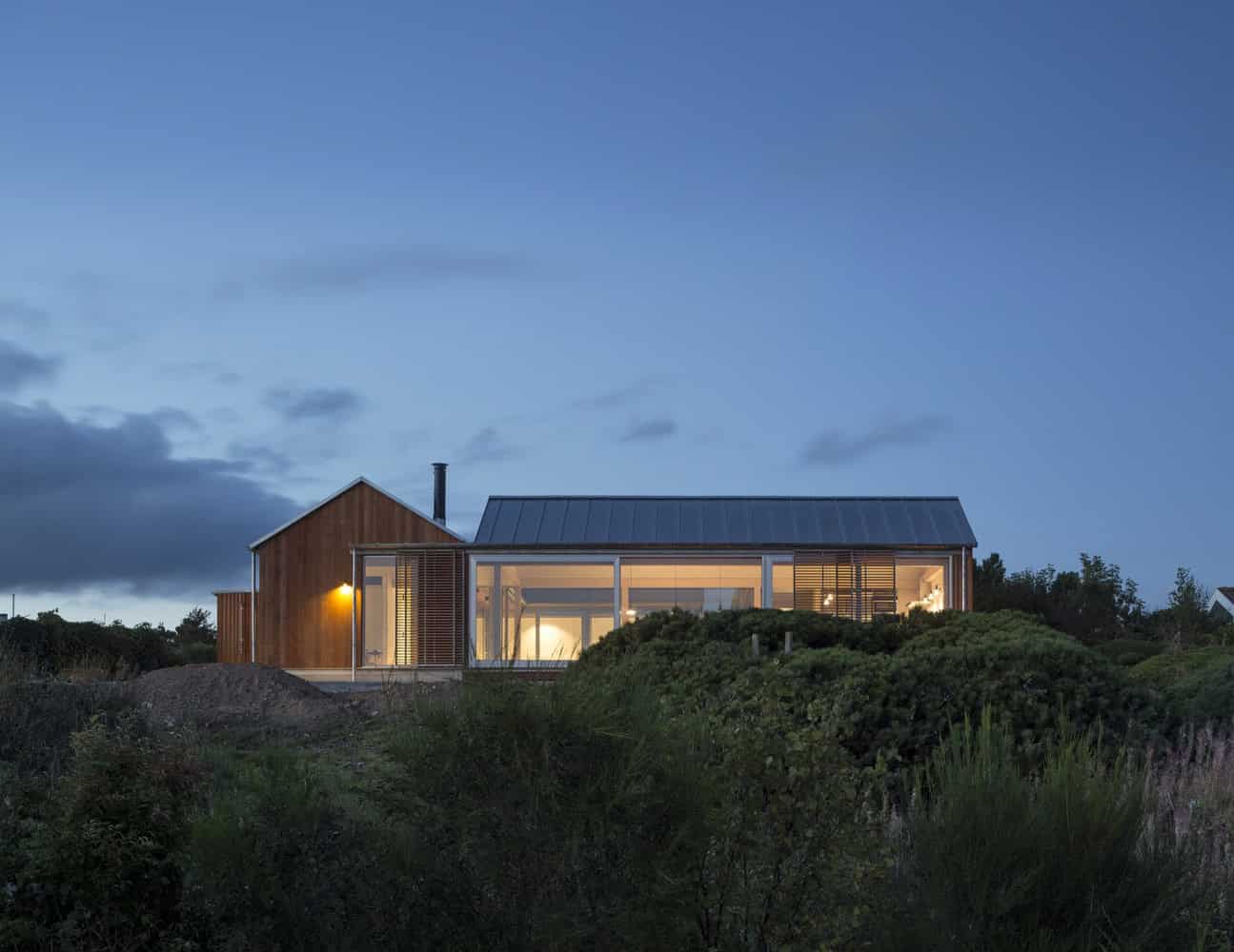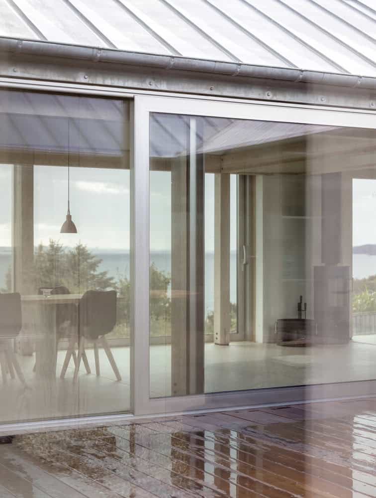A rugged outer materiality consisting of wooden planks, galvanized steel and zinc makes for a house that can withstand the harsh costal climate. A polished concrete floor with exposed aggregate provides a robust surface to handle the indoor/outdoor use of the house and the walls of pinewood sheets lends warmth to the interior.