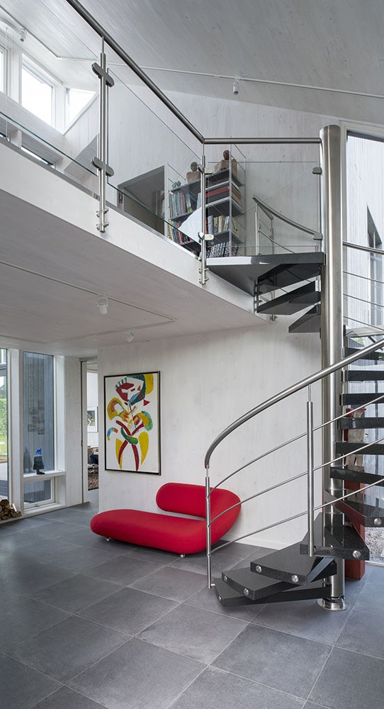 Building an innovative fully self-sufficient and sustainable holiday home was the goal set by the client from the beginning. Setting an example was at least as important to him as the fact that he wanted to create a great getaway for his family. Besides the smart cross laminated structure, the house boasts a foundation of aerated concrete, a super insulated skin of hemp fibers, geothermal and mass heating, a 19 kilowatt solar roof providing enough energy for the house, the cars and some of the neighbors when the family is out, bio-based materials, natural ventilation and of course fully integrated state of the art home automation which has its own 48 volts’ network powered by the solar charged home batteries.