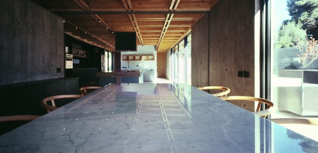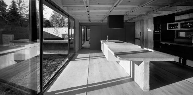 Construction wise, the home is built with exposed concrete while the exterior is defined with metal panels and large windows.