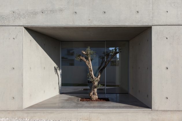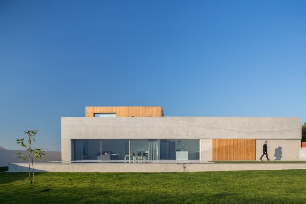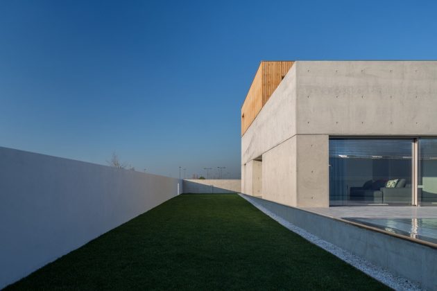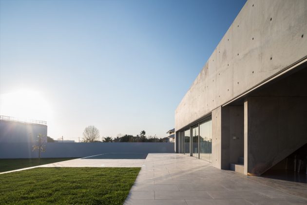 nu.ma has designed the House in Avanca, a residential project of a contemporary home that offers about 2,690 square feet of minimalist living spaces. The concrete shell provides all the privacy that the residents of this home needs, but it also allows the interior to open up to a beautiful outdoor spaces with a swimming pool.