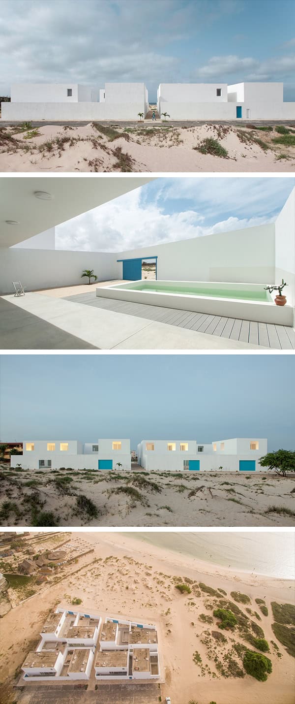 From the architects: “The detached houses at Praia do Estoril are located in a privileged area in Sal-Rei, Boavista Island, Cape Verde. The location is excellent due to the great proximity to the city centre – within a few minutes walking distance –and the direct access to the magnificent beach and the dunes of Praia do Estoril.