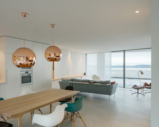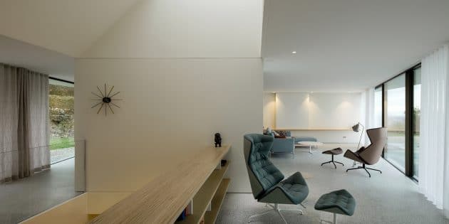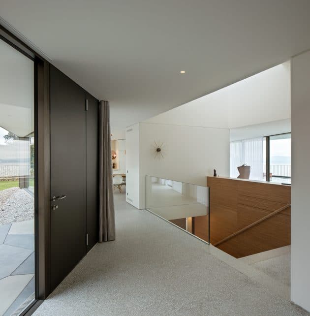 Bauzeit Architekten has completed a luxurious modern home near the Swiss village of Hauterive. The location on which the House in Hauterive is placed is simply perfect. It is in the middle of a lush forest, elevated from the valley below delivering breathtaking views in any direction you look at. The interior makes the most of that through the large glazed surfaces that also bring plenty of sunlight over the minimalist interior design.