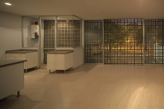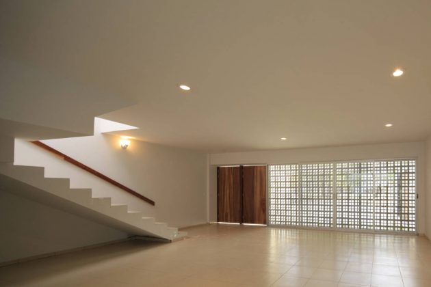 To take advantage of the wide market of the neighborhood, an open floor plan is proposed so it could be use as a residence and/or offices. The spacious structure is simple and clear. The front and back restrictions are used as patios which provide the interior with natural light, cross ventilation and a view. The construction method chosen was all load bearing walls to be on the exterior and internal non load bearing partitions. To solve the façade a simple plain precast concrete lattice work was used, which allowsdoes not restrict the view from inside and maintains privacy.