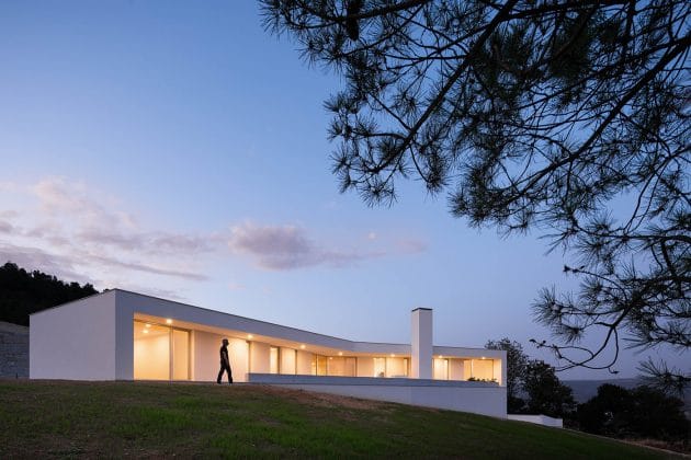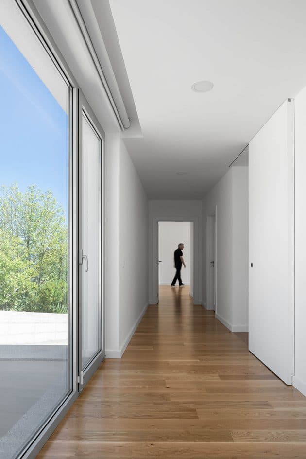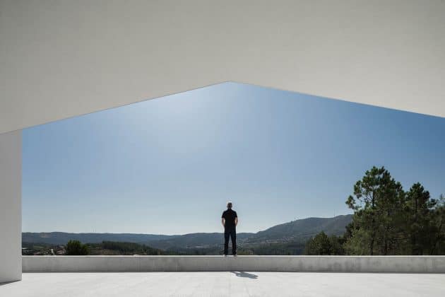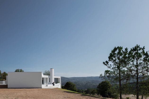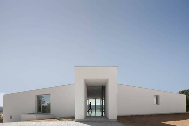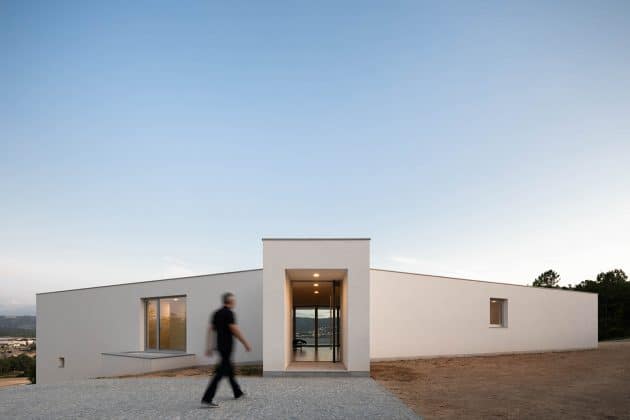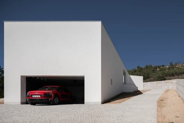 It was decided to build the house against the driveway, the volume is adjusted until it slightly turns its back on anyone who arrives and the house also manages to carefully protect the view of the surrounding landscape, in this position. It is in this game of hide and seek that the surprise increases, we start wanting to climb, to understand, to arrive, to enter, to discover.