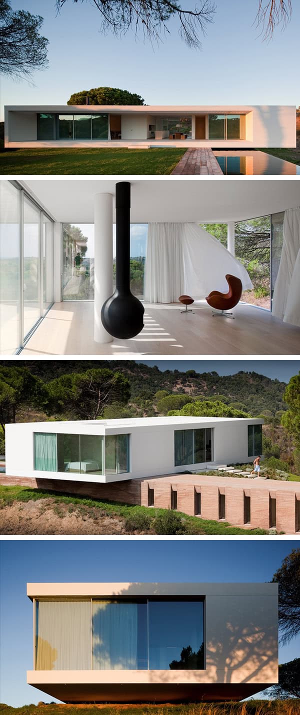 From the architects: “The house in Melides, on the southern Alentejo Coast, by Pedro Reis, represents the desire for a holiday house as a getaway from the bustle of a big city. The client made the unusual decision to have an architectural competition between three distinct ateliers, allowing a choice from a wider range of possible solutions. This winning proposal presents a reading of the “drama” of the natural countryside, building it on top of a steep hill relatively protected by the surrounding “rugged topography”.”