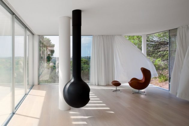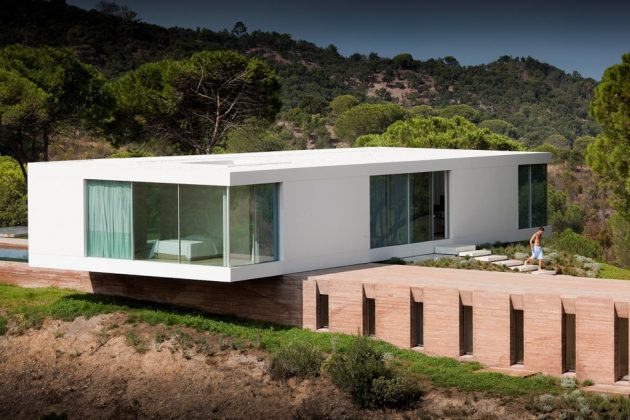From the architects: “The house in Melides, on the southern Alentejo Coast, by Pedro Reis, represents the desire for a holiday house as a getaway from the bustle of a big city. The client made the unusual decision to have an architectural competition between three distinct ateliers, allowing a choice from a wider range of possible solutions. This winning proposal presents a reading of the “drama” of the natural countryside, building it on top of a steep hill relatively protected by the surrounding “rugged topography”.”