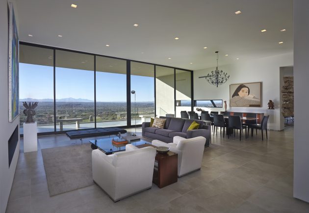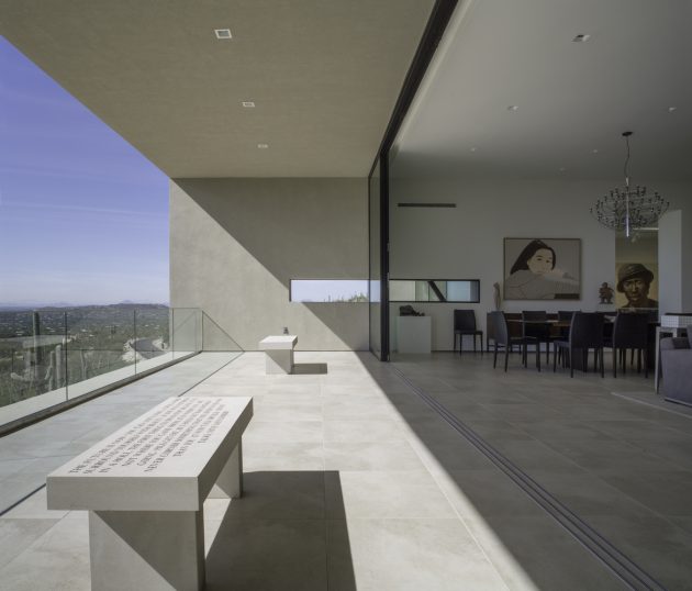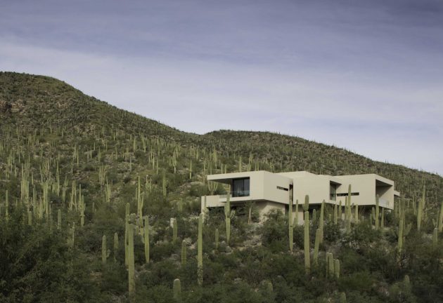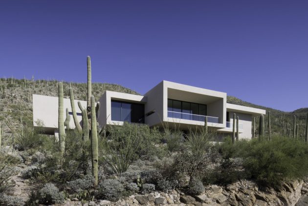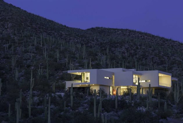 From the architects: “There are only a few instances in an architectural career where a client and an architect’s vision unify into an immaculate and complete expression of art and architecture. We were very fortunate to work with a couple who, devoted to the ideals of minimalism’s stark allure, asked us to design a house in the foothills of Tucson, Arizona, located in the profoundly diverse Sonoran Desert. The owners’ refined sense of contrast required a “modern, minimal home: a pristine box that seemed to have landed in the desert.”