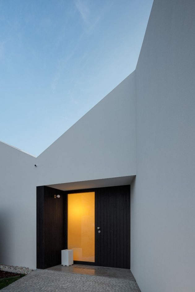The option to “close” the house to the street creates a sense of privacy and isolation. In our view, this should be one of the purposes and concepts of inhabit… to create a refuge where we feel good. Thus, the house is facing to the street only the main entrance area and the car access. The remaining program, of an intimate nature, turns to the interior of the terrain.