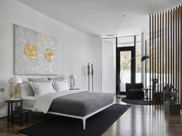 Futuristic architecture as a natural extension of nature. The base interior solutions are the principle of the “home gallery” integration into the living space. The building frame is the backdrop for decor and art, sculptures, decorative elements with hidden Japanese themes, symbolic forms. Each piece of furniture is interpreted as an art work. The panoramic molded windows do not prevent the focus from the site on the “history” that occurs in the house and do not destroy a single architectural field, which includes the exterior-interior and landscape solutions. Art objects are also zone elements of residential and non-residential spaces, and are the tracers of the movement direction.