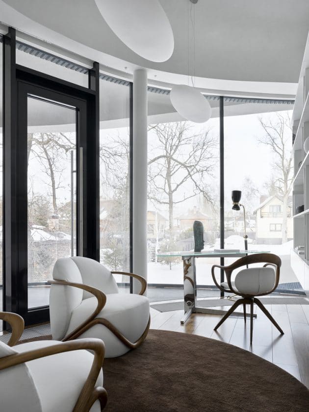 The House in the Landscape project by Niko Architect is a spectacular design of an organic modern residence with a sort of a futuristic look. This 3,229 square foot home is located in a village near Moscow, in an area blessed by nature. The design takes the surroundings into account and works from there, trying to incorporate the dwelling into the landscape.