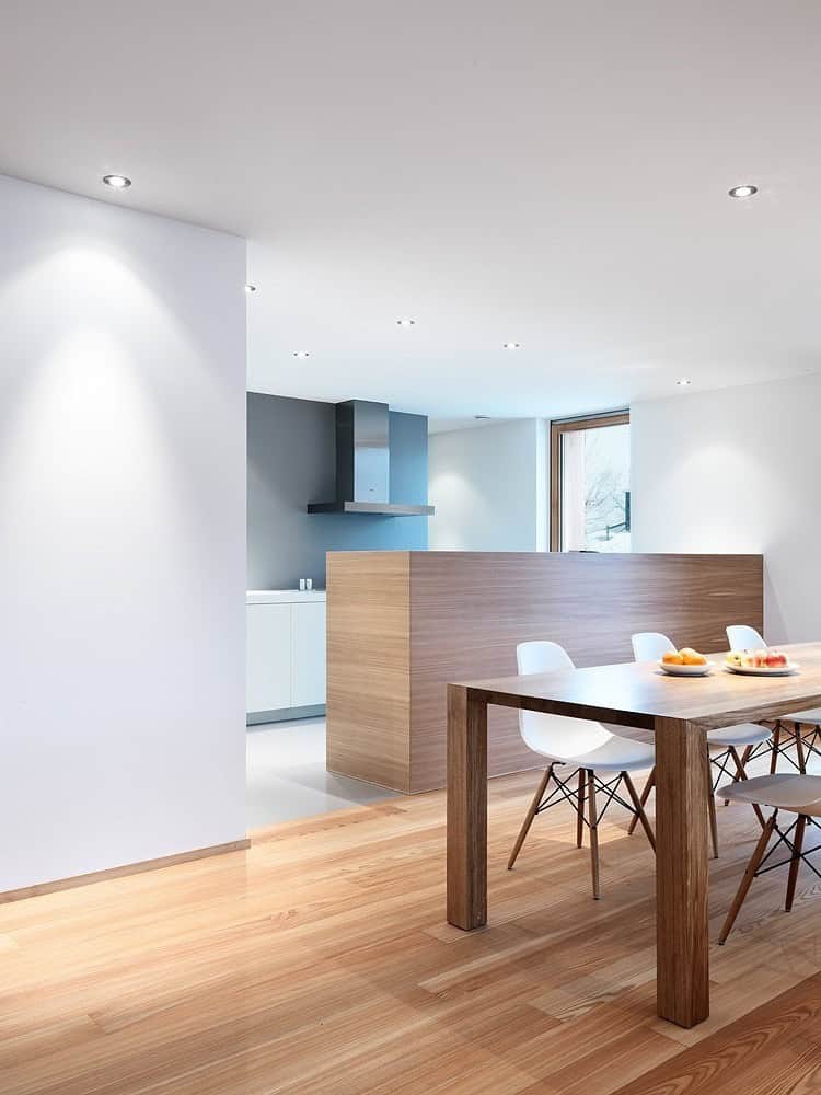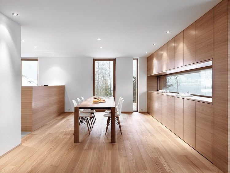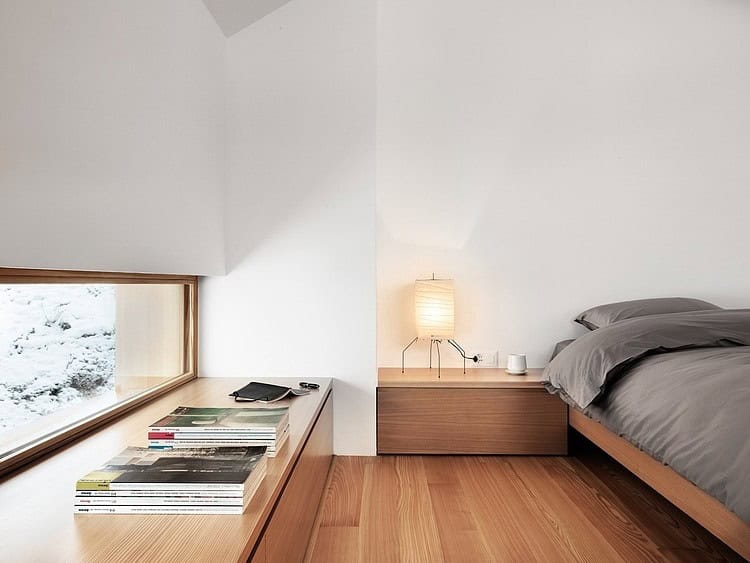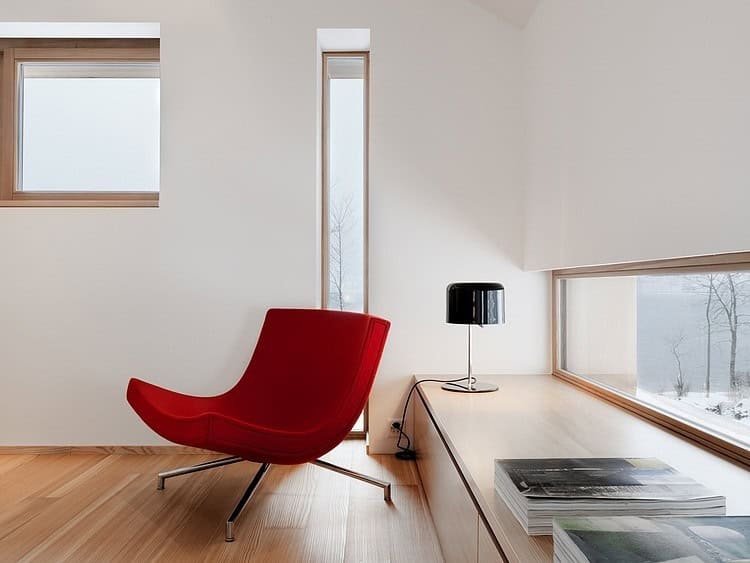 Built with local and environmentally friendly materials (“Minergie” Label) that envelope contains a sleek and minimalist interior. White walls and larch are used in a perfect harmony in order to give a calm atmosphere to the place.