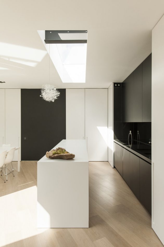 House K is a beautiful modern dwelling placed within a quiet wooded area in Buggenhout, Belgium. The house spans across two levels and offers just under 2,000 square feet of minimalist modern living spaces in a black & white theme. It was designed by GRAUX & BAEYENS Architecten, a studio whose work has already been showcased on our site, namely, we’ve featured their House VDV, House DS as well as House L-C projects, all located in Belgium, so make sure you take a look at those too.