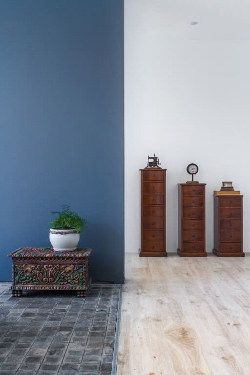 The various materials used—from exposed brick to impacted cement and natural stone—marries rustic design with ‘strong’ volumetric figures and clean lines. These materials also serve to highlight the introverted personality of the design. Finally, we maximized airflow and ventilation into the various wings of the house and minimized direct.