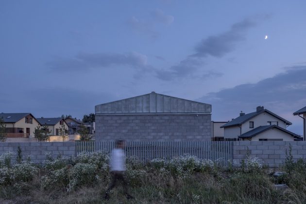 Since the house is only 4 meters high, it maintains not only privacy but also respect for its surroundings, as it does not block sunlight from neighboring houses. Its length occupies the same space of two nearby houses, but its height allows it to act as a passive sunflower that does its best to benefit from the scarce sun: in the morning the sun rises up the front yard and sets on the backyard. The large openings are carefully positioned in order to take advantage of as much light as possible. The main materials used for the construction were fiber cement blocks, as the foundations of the design, as well as oak, steel, aluminum, and glass.