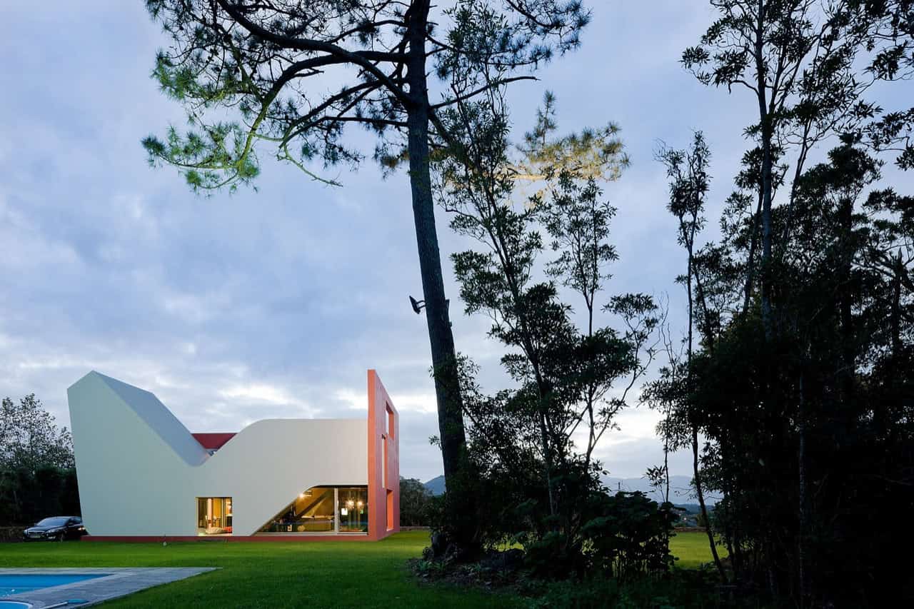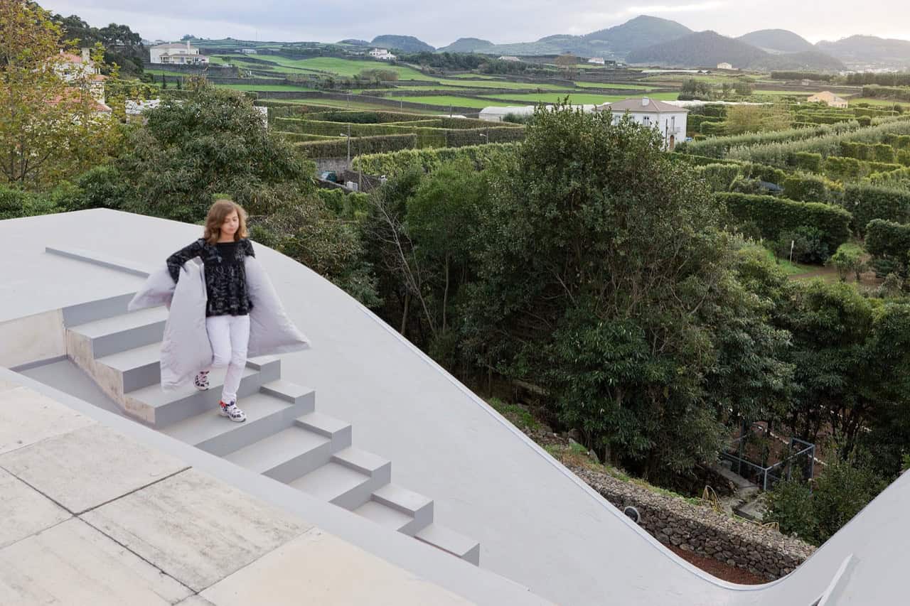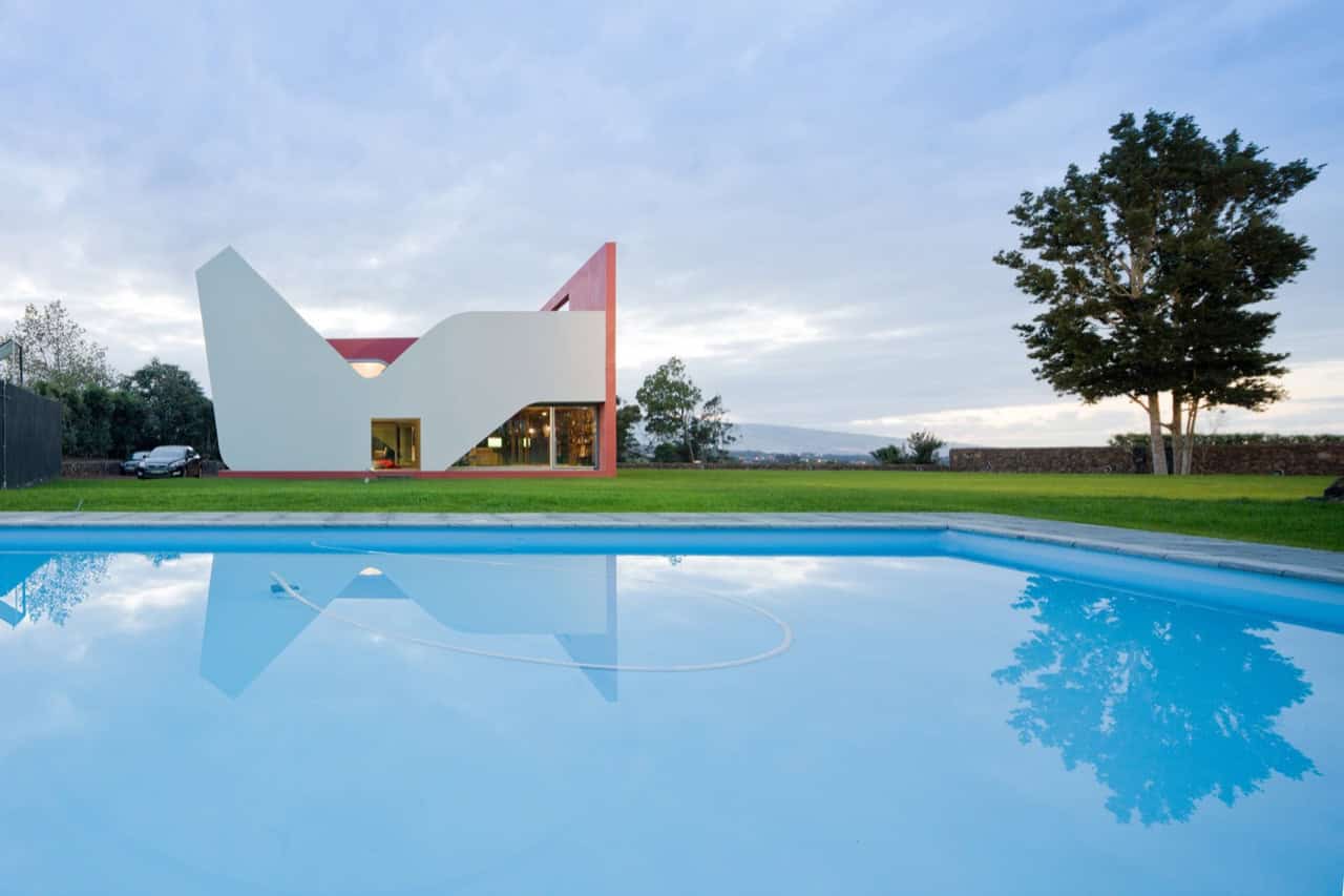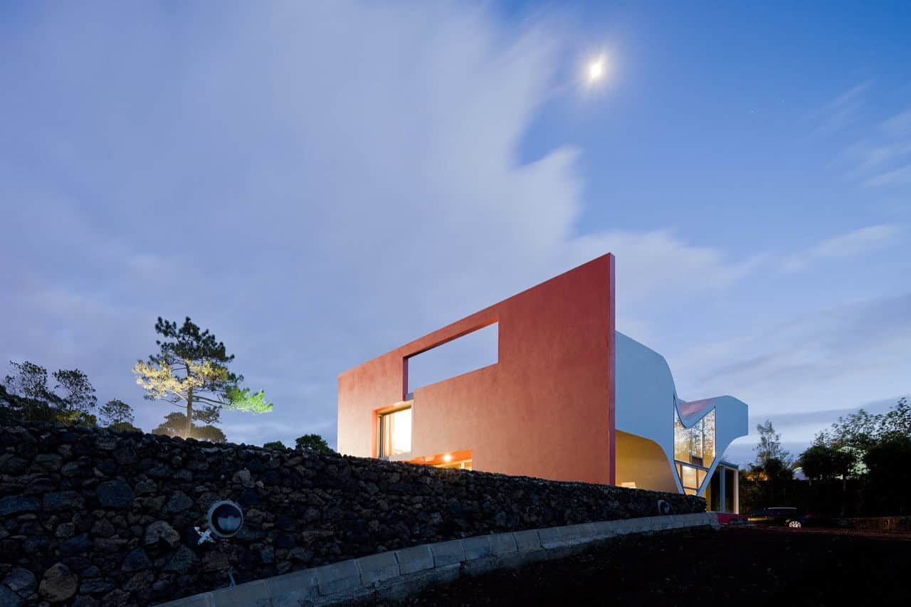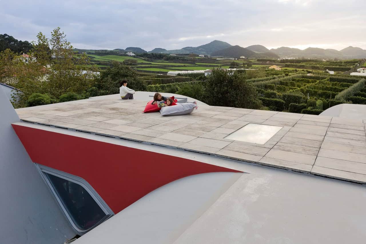 Bernardo Rodrigues designed the House on the Flight of Birds on the north side of the Saint Michael Island in Portugal. This single family home is designed to establish a strong connection to the outdoors regardless of the weather conditions. Its contemporary shape is defined by a series of stacked volumes that intersect with each other, linked only by a contoured form.