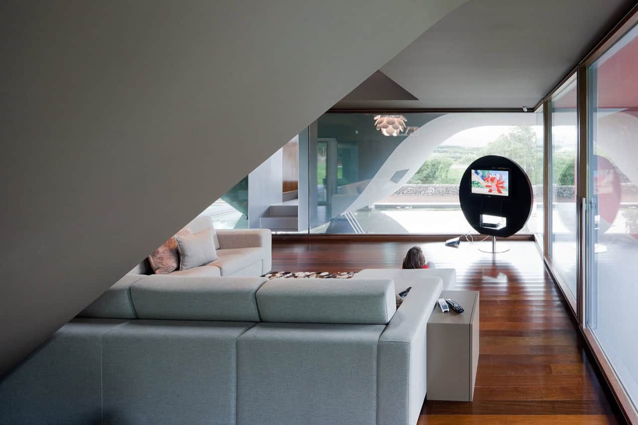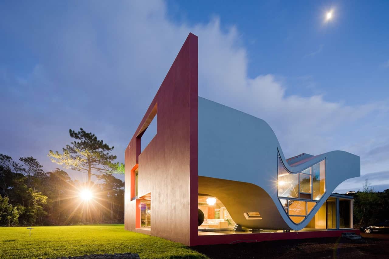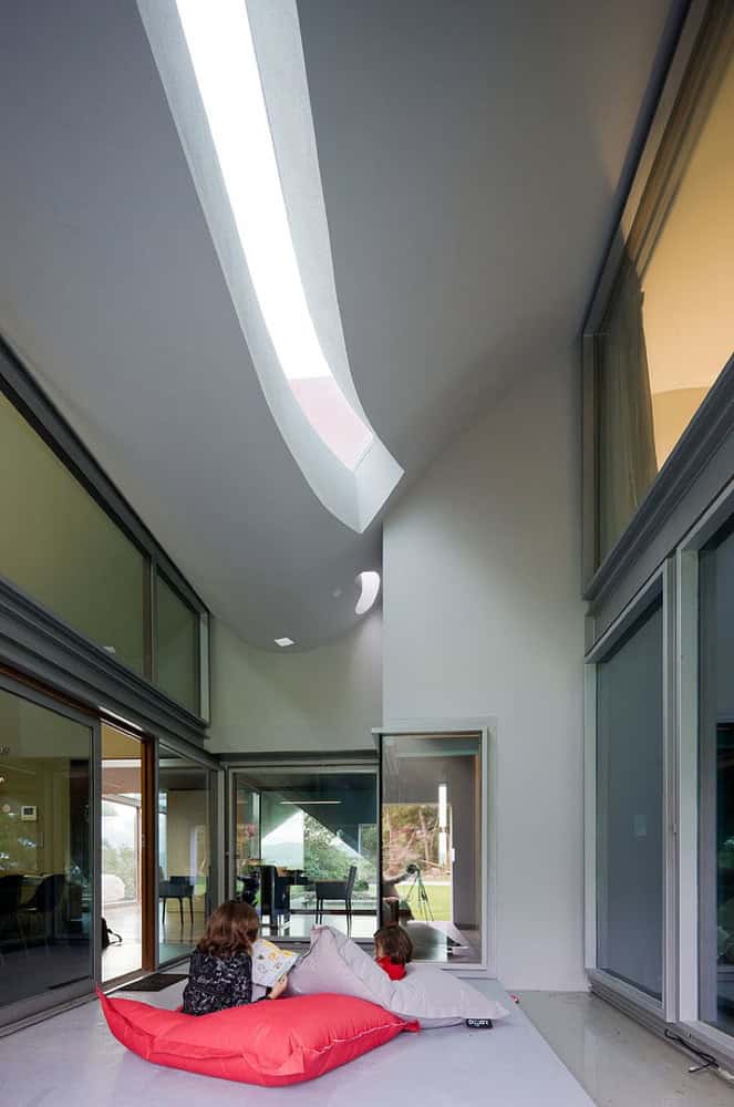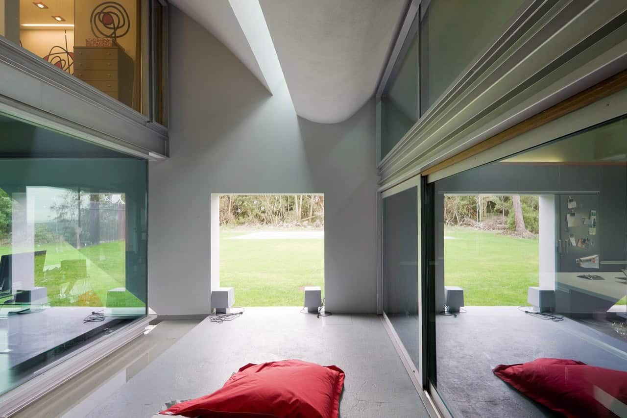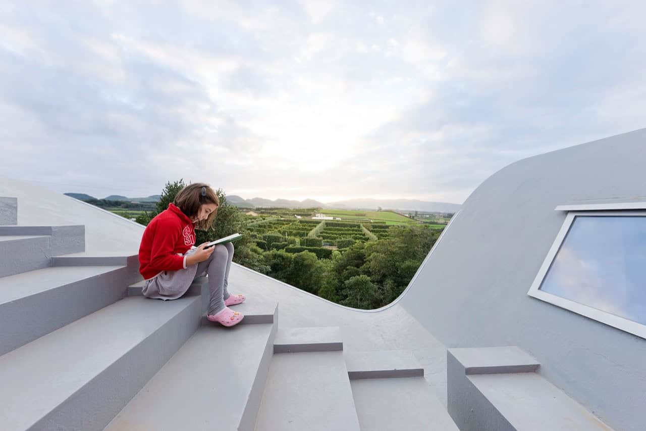 Bernardo Rodrigues designed the House on the Flight of Birds on the north side of the Saint Michael Island in Portugal. This single family home is designed to establish a strong connection to the outdoors regardless of the weather conditions. Its contemporary shape is defined by a series of stacked volumes that intersect with each other, linked only by a contoured form.