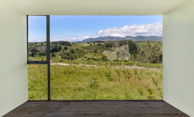 Designed by Mutar Estudio, the House on the Top is a modern residence commissioned by two couples who co-own a site near Curanipe, a coastal town in Chile.