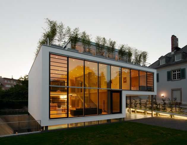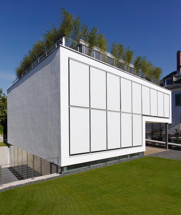 From the architects: “The property once was a part of a northern situated villa. A pavilion, which belongs to the historic ensemble, is part of the wall that encloses the property on all three sides.