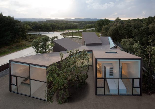 The House & Studio YC project by Spanish firm RTA Office is a building that is shaped out of five box-like blocks that span out from the center. The design takes on this shape with the goal to separate the living areas from the workspace of the owner and with its 3,121 square feet of interior area, it manages to do all of that with the added bonus of providing every block with unobstructed views of the landscapes around the home.