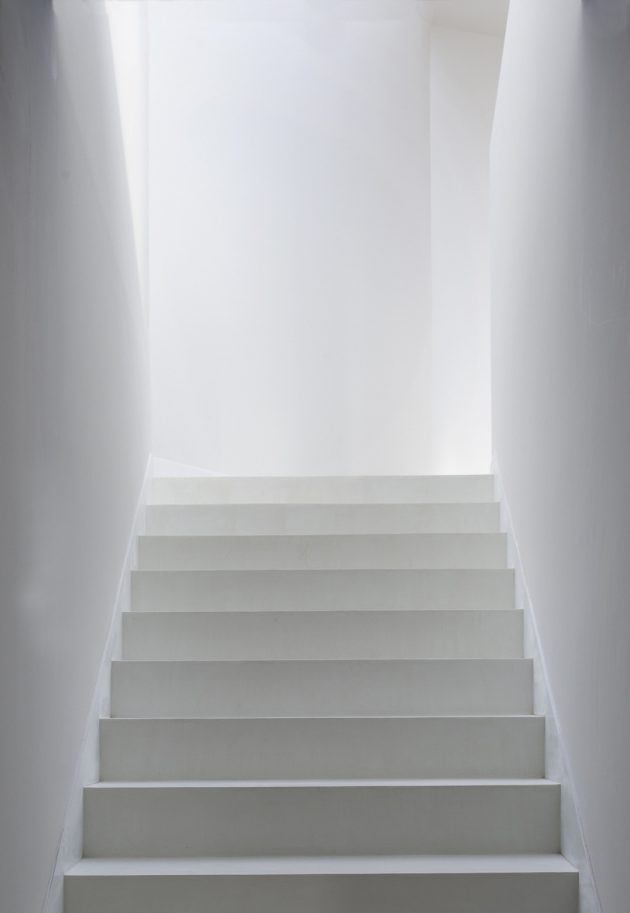 All uses are arranged in underground and ground floor. Main access is placed in lower level both for pedestrians and cars. From one side it is possible to reach the main stair to upper floor and from the other side an independent studio with its private entrance. This area gets natural light thanks to its glass walls and to the double height courtyard that leads light from the bottom to the basement.