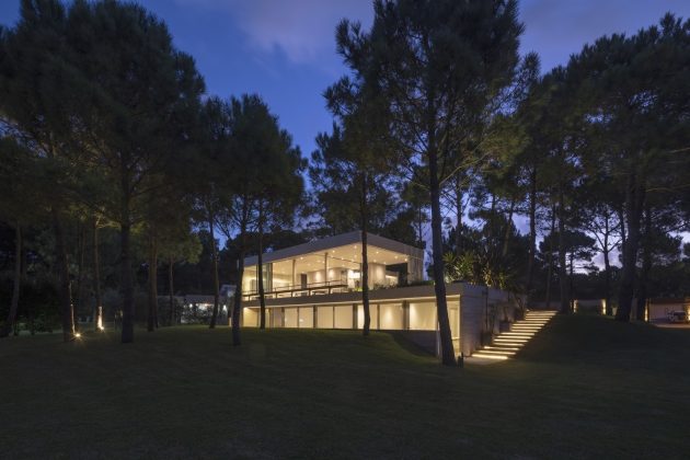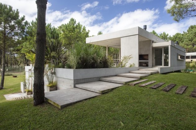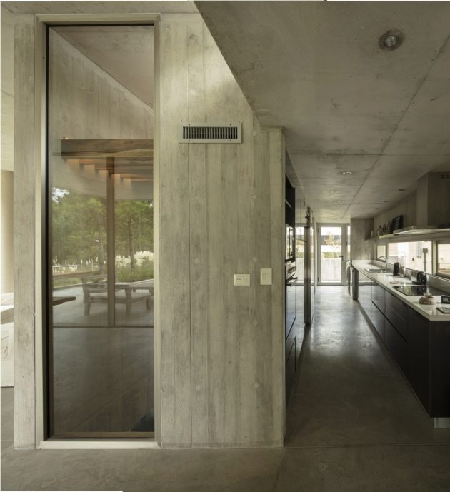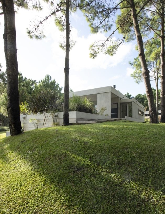 The House With Ten Pines is a stunning example of architecture that blends seamlessly with its surroundings. Located in the city of Pinamar, Argentina, this rest house is nestled in a dense pine forest, with a sloping downward slope towards the back. Designed by Estudio Frolik, the construction is primarily a response to the natural environment in which it sits.