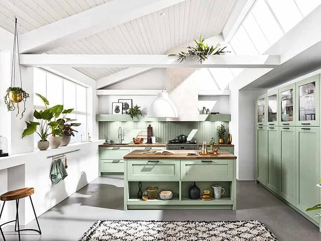 Most kitchen designers offer light green kitchen furniture: this is one of the most popular colors for its soothing and natural appearance. If you can’t find the shade or finish that suits you in their catalogs, take a look at the manufacturers of facades adaptable to Ikea kitchen furniture such as Plum, Reform, or Bocklip. And for those who have a specific shade of light green in mind, go to Superfront, which now offers its lacquered fronts for Ikea furniture in 1950 NCS (Natural Color System) colors, including more than the substantial light green palette.
