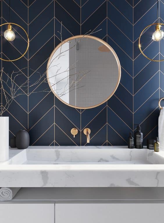 Evoking the natural elements, blue is a colour particularly suited to the bathroom. Depending on its intensity, this colour suggests multiple sensations: dynamism, freshness, purity, well-being… But be careful, not too much is needed. A bathroom with a total blue look can be oppressive. It is, therefore, preferable to opt for touches of blue, which, combined with other colours and light, will create decorative contrasts and enhance your bathroom. These touches of colour can be provided by a blue-tiled floor, blue bathroom furniture, a blue earthenware wall… Because it comes in a wide range of colours, blue is an extraordinary colour that adapts to all atmospheres, from the most classic to the most baroque, including modern, ultra-design, exotic Moroccan bathrooms or seaside styles.