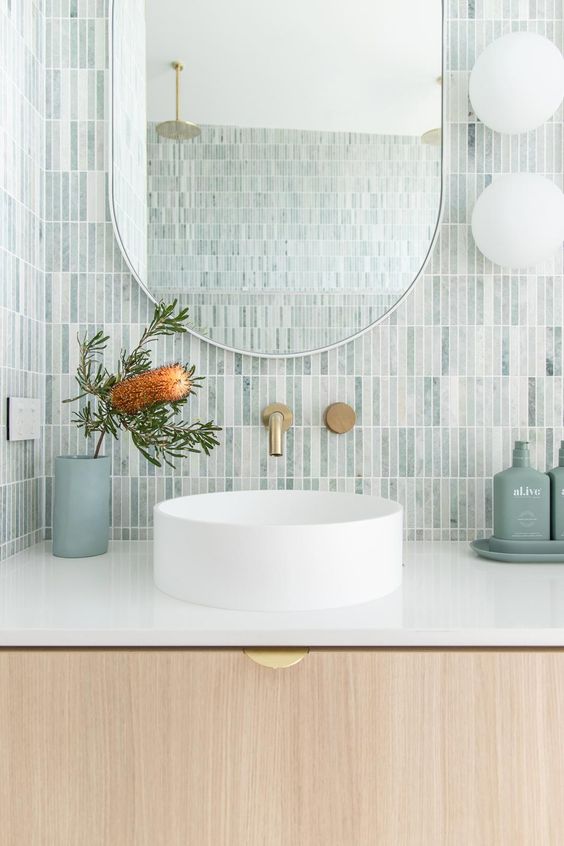 We made a bathroom collection that incorporates the blue colour and we find it amazing what the right colour can do to a room: